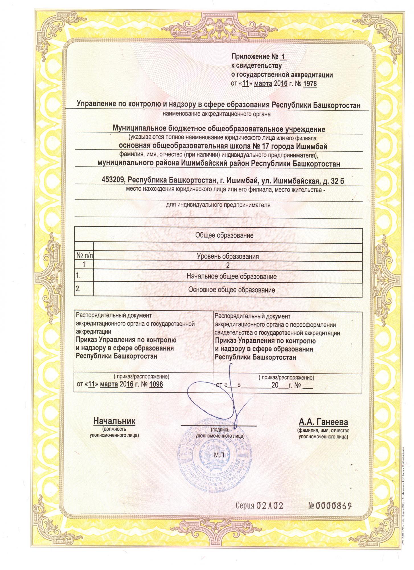 | Адрес места нахождения образовательной организации | Фактический адрес: 453209, Республика Башкортостан, город Ишимбай,